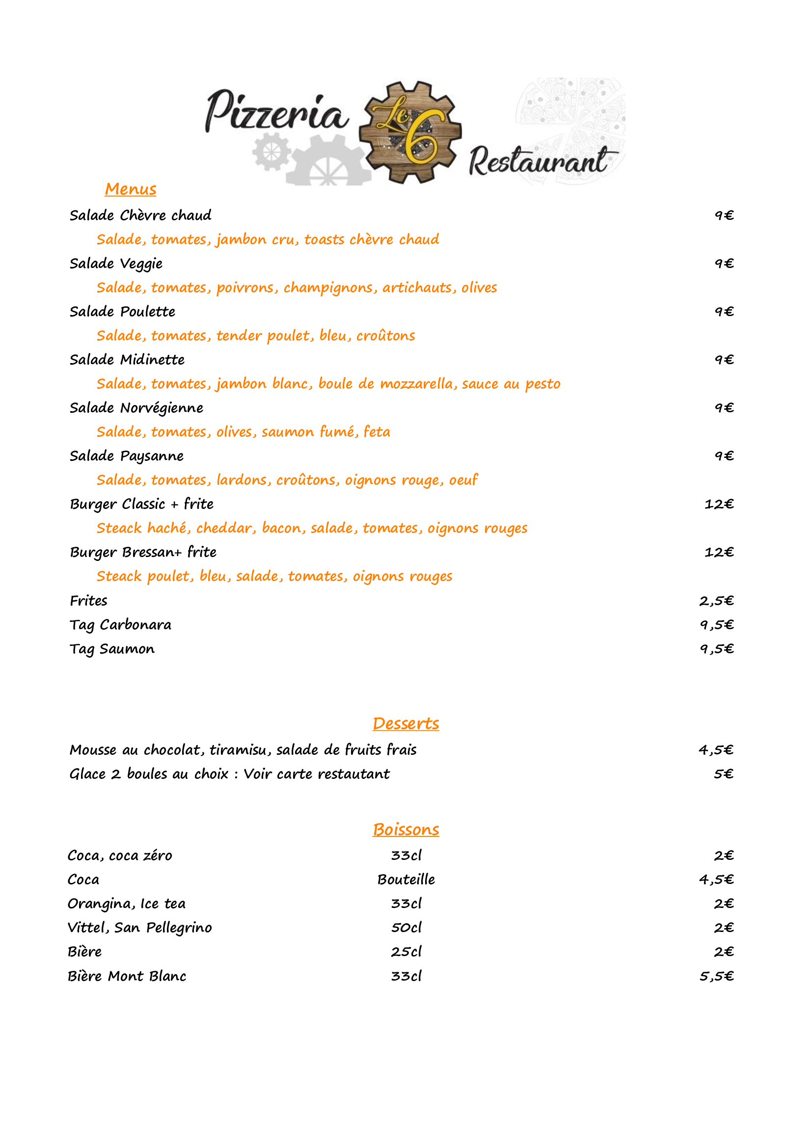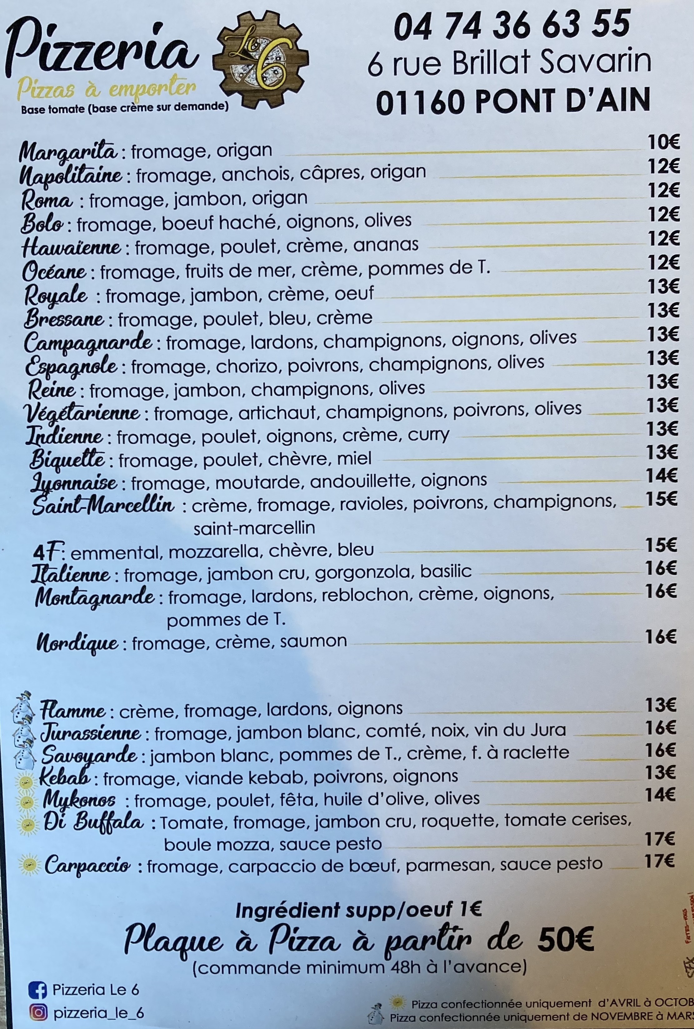 Tous à la Pizzeria le 6, sur place ou à emporter.